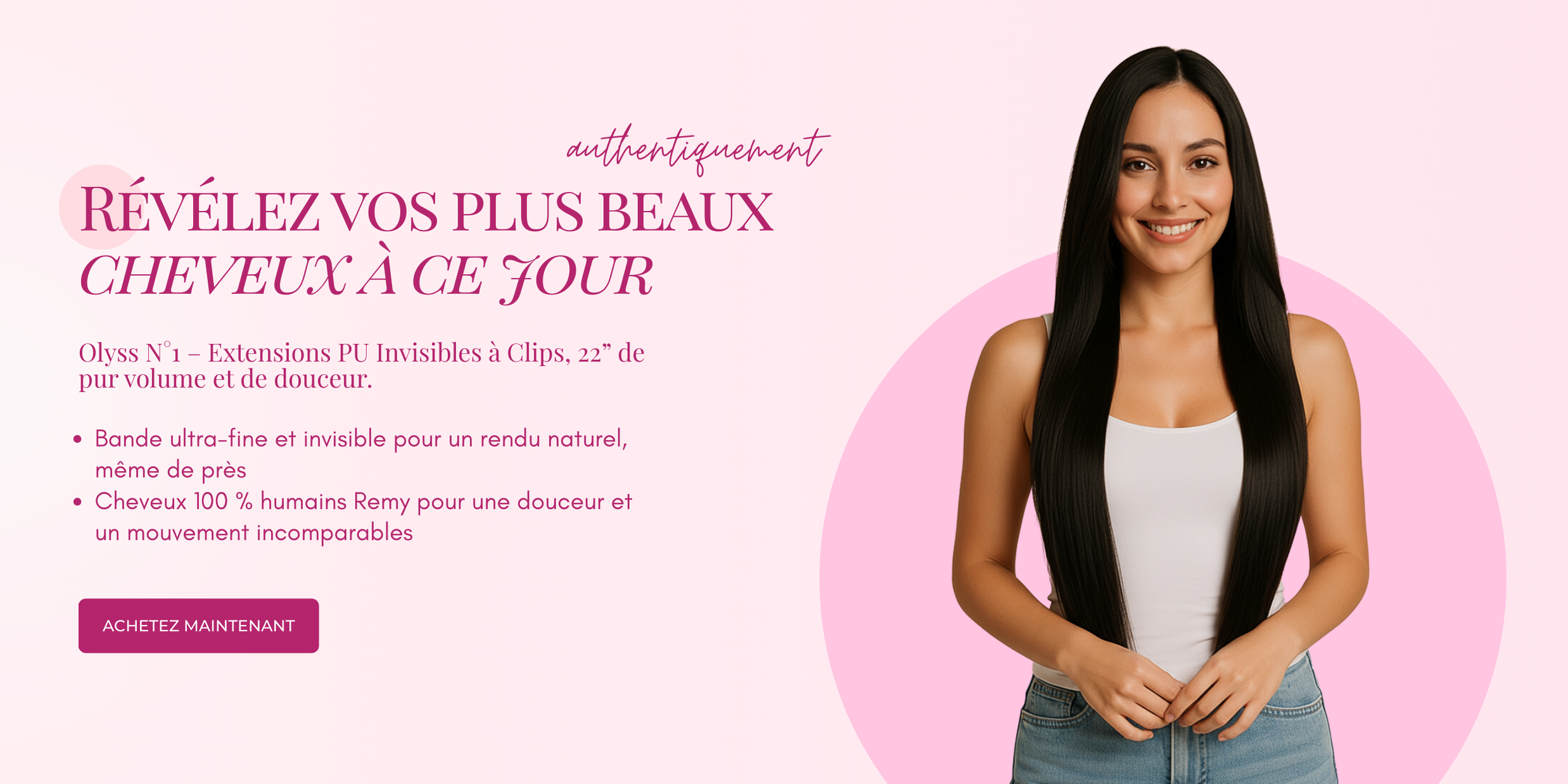 Nous avons créé Olyss N°1 pour les femmes qui souhaitent plus de volume et de beauté. Avec un fini invisible et une fluidité naturelle, nos extensions ne se fondent pas dans votre chevelure, elles s'intègrent parfaitement à votre silhouette.